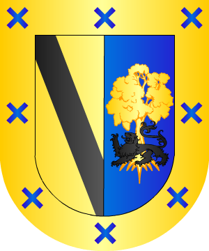 y 4º, en campo de oro, una cruz con dos luceros de oro, y 2º y 3º,