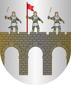 de gules, un castillo de oro, terrasado de sinople, y en su torre de homenaje