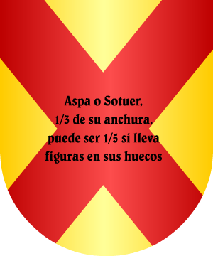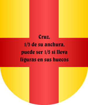 C ruz: Una cruz que llega con sus brazos hasta los bordes del escudo. EL ancho de sus brazos es 1/3 del ancho del escudo. Al escudo que la lleva se le denomina "Escudo cruzado". |