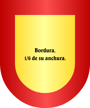 B ordura: Espacio del borde del escudo de 1/6 de su anchura. Si el campo en su interior es del mismo esmalte, se le denomina "Bordura cosida". |