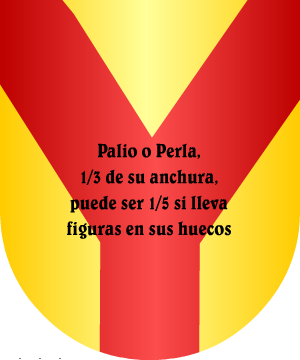 P erla o Palio: Pieza en forma de Y que consta de un palo en su parte inferior y dos brazos que van a los ángulos superiores del escudo.Su ancho varía entre 1/3 y 1/5 del ancho del escudo. |