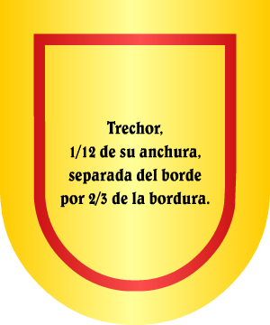 T rechor: Pieza similar a la Orla, pero de la mitad de su grosor, 1/24 del ancho del escudo, dejando el espacio libre (1/8) hacia el borde del escudo. |