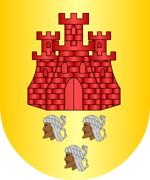1.- En campo de oro, un castillo de gules, acompañado, en punta, de tres cabezas de moro.