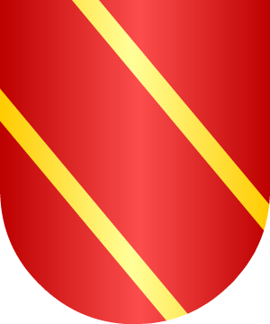 2.- Algunos Beltrán de esa misma casa y de Huesca modificaban el anterior escudo poniendo en campo de gules dos bandas gemelas de oro.