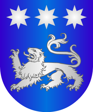 16.- Juan José Vilar y Psayla señala que otros ponen una estrella en vez de tres y que el lobo está linguado de gules.