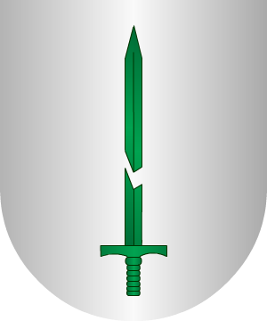 10.- Otros traen: En campo de sinople, un toro pasante de oro surmontado de un cometa del mismo metal en banda; bordura de oro con el lema RIBUS QUI ES ALABO en letras de sable.