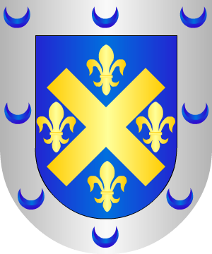 de sable. 31.- En el expediente del Caballero de la Orden de Alcántara de Pedro Nicomedes Campos de Orellana y Calvo, natural de La Haba (Badajoz), año 1861, constan las siguientes armas: Escudo partido: 1º, en campo de sinople, tres barras curvas de gules, y 2º, en campo de azur, diez roeles de oro. 32.- En la calle de los Aranda, de la ciudad de Granada, constaban las siguientes armas: Un árbol terrasado y dos leones rampantes contramirándose. Bordura con dieciocho losanges. 33.- Los de Granada, según Francisco Fernández de Béthencourt, traen: En campo de oro, un árbol terrasado de sinople, atravesado de dos zorras de su color natural, andantes, la primera contornada, al pie del tronco. 34.- Otros, en Portugal, tienen: En campo de azur, tres cabezas de león de oro degolladas, lampasadas de gules y puestas en triángulo mayor. 35.- Los radicados en Punta Arenas (Chile), según Vicente de Cadenas, usan: En campo de oro, un árbol, de sinople, con dos leones, de gules, empinados a su tronco. Bordura de plata con siete cabezas de moro. Divisa: "Campi tui replebuntur ubertate". 36.- Finalmente, diremos que en Flandes tuvo asiento una familia de este apellido, cuyas armas se organizan así: En campo de plata, tres fajas de gules brochantes sobre ellas, tres barras del mismo color. Complemento de información de estos linajes por cortesía de blasonari.net |