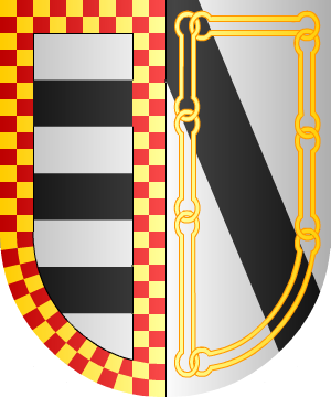 4.- Otros traen: En campo de plata, tres bandas de sable, y bordura jaquelada de oro y gules en dos órdenes.