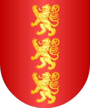 2.- Otros traen: En campo de gules, tres leones rampantes de oro, puestos en palo.
