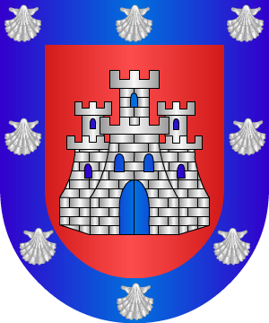 3.- Otros usan: De azur, un castillo de plata, surmontado de una cruz floreteada de oro.