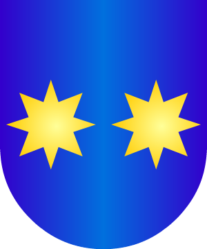 de serpiente de sinople. Bordura de gules, con ocho estrellas de oro de ocho