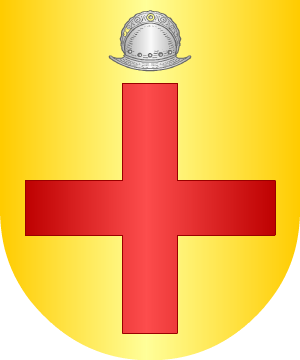7.- Los originarios de Castilla y radicados en Moguer (Huelva) y Madrid, según Vicente de Cadenas, traen: En campo de oro, una cruz llana, de gules. Bordura de gules con ocho estrellas, de oro, de ocho puntas cada una.