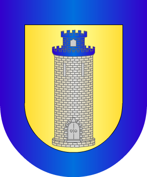 1.- Traen en campo de oro, una torre de piedra con su homenaje y capitel de azur. Bordura de azur plena.