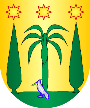 1.- En campo de azur, tres montes, de sinople (sic,), con una paloma, de plata, y un ramo de olivo en su pico, sumada a la del centro.