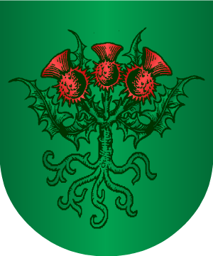 3.- Otros traen: En campo de gules, un brazo armado, de plata, moviente del flanco siniestro, con una espada en la mano que atraviesa un bezante de oro.