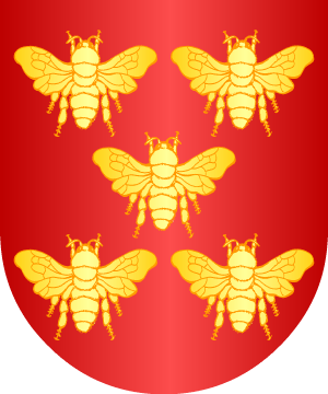 15.- Otros, según Vicente de Cadenas: En sinople, un campanario, de oro, acompañado de tres flores de lis, puestas en palo a la diestra.