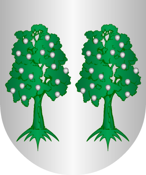 3.- Los radicados en Segovia, según Vicente de Cadenas, usan: En campo de plata, dos olmos, de sinople, puestos en faja, arrancados y frutados de plata.