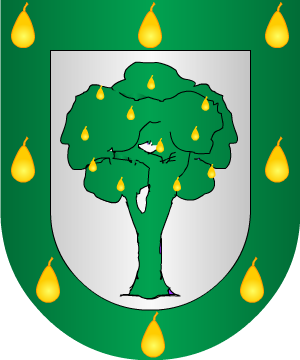 64.- Otros traen: En campo de plata, una torre y un peral, de sinople, frutado de oro. Bordura de azur, con tres lises, de plata.