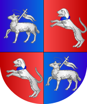 2.- Otros Prat, de Barcelona, traen: Escudo cuartelado: 1º y 4º, en campo de plata, tres rosas de sable, puestas en triangulo, 2º y 3º, en campo de gules, un castillo, de plata.