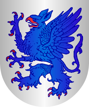 En campo de oro, ocho roeles de azur, puestos en dos palos.