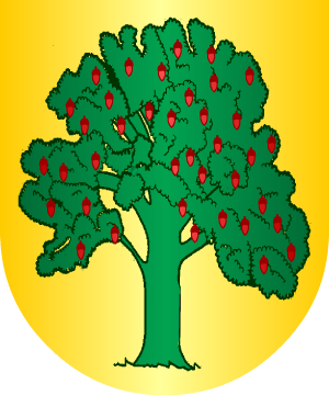 3.- Otros: En oro, un roble, de sinople, frutado de gules.