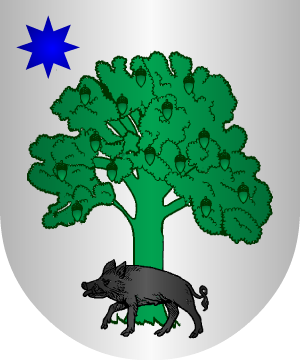 8.- Otros Ustáriz: En sinople, una encina de oro, frutada de gules.