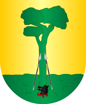 2.- El tratadista Argote de Molina señala que las primitivas armas de esta casa son: Mantelado, 1º y 2º de plata, un árbol de sinople y al pie del tronco un lobo andante de sable; y 3º o manteladura, de gules, un castillo formal de oro.