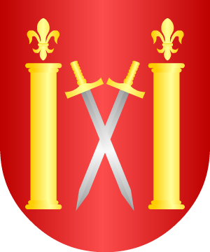 En campo de azur, Cuatro espadas de plata apuntadas hacia el centro del escudo.