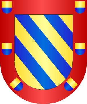 44.- Otros según José Pellicer de Tovar, traen: En campo de gules, una banda de oro, acompañada en jefe de una estrella de oro, y en punta de una luna de plata; bordura de plata, con el siguiente lema en letras de sable: "La virtud al oro apura y le da maior valor".
