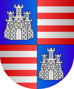 5.- Otros traen: En campo de sinople, una torre de oro, almenada y mazonada, de sable, cargada de una espada.