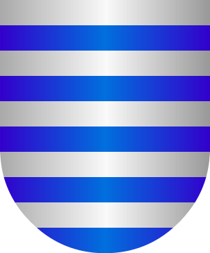 Compuesto de cotizas en banda y barra dejando ver el campo del escudo que recibe así el nombre de fretado. Presenta tres cotizas en banda y tres en barra.