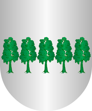 En campo de azur, un león rampante de oro, y en el jefe, tres crecientes