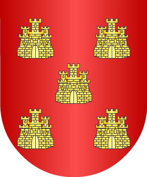 traía: Escudo terciado en faja: 1º, en campo de gules, un roque