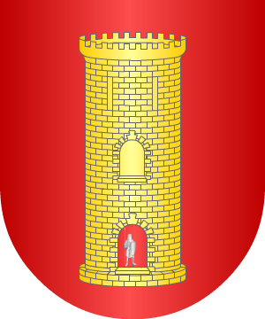 de sinople, puestas en sotuer; 2º y 3º, de gules, con un castillo