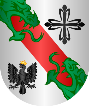 de sable y en lo bajo de un águila, también de sable. 22.- En el expediente del Caballero de Calatrava Francisco Antonio Martín y Berrio, natural de Cabeza de Buey, año 1749, constan las siguientes armas para los López-Berrio: Escudo partido: 1º, en campo de gules, un sol dibujado, debajo una inscripción que pone "Solos", y 2º, cortado: primero, en campo de sinople, una cruz que parece de Alcántara, y segundo, en campo de azur, una barra de gules que lo atraviesa y un águila. 23.- Aznar Martínez de Berrio, caballero navarro, árbitro en el pleito entre los Enériz y el Arcediano de la Cámara, año 1280, usaba por armas: Tres potes, bien ordenados. 24.- Otros Berriozábal traen: Una banda, acompañada de tres estrellas y un árbol. Pero no indica los esmaltes. Información de estos linajes complementada por cortesía de blasonari.net |