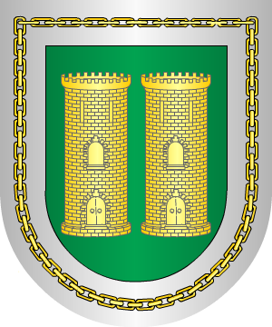 de sinople, puestas en sotuer; 2º y 3º, de gules, con un castillo