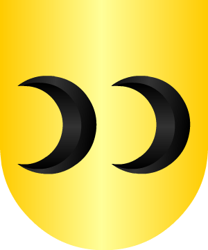 Escudo mantelado: 1º, en campo de gules, tres palos de oro; 2º, en