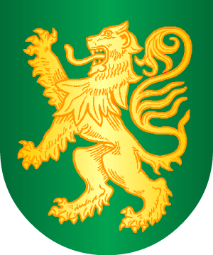 plata, cargada de tres calderas, de sable y acompañada de dos flores