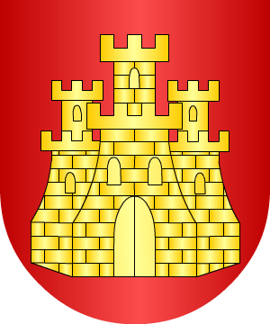todo de oro. 69.- En el "Libro de Armería de Navarra" aparecen las armas de Mossén Francisco del Castillo, Caballero de San Jorge, vecino de Tudela, y de Juan del Castillo, su hijo, vecino de Cascante, que son: Escudo cuartelado: 1º y 4º, en campo de plata, una cruz floreteada de gules, y bordura para este cuartel de azur con ocho castillos de gules, y 2º y 3º, en campo de azur, un castillo de gules, un lucero de oro en jefe, y bordura para este cuartel de azur con ocho luceros de oro. 70.- Otros, según Gonzalo Argote de Molina, traen: En campo de azur, un castillo de oro con una bandera blanca. 71.- José de Rújula y Escobal, Cronista y Rey de Armas del Rey Don Alfonso XIII, certificó el 23 de Enero de 1904 las siguientes armas. Escudo cuartelado: 1º y 4º, en campo de azur, una cruz floreteada de oro, y 2º y 3º, en campo de gules, un castillo de oro. 72.- Otros, según Alonso Rodríguez de la Vega, traen: "Un castillo de oro en campo de gules y un león en campo de plata". 73.- Otros, según Agustín de Loaysa, usan: En campo de sinople, un castillo de plata pasado de sable. Bordura de oro con ocho roeles de azur torneados. 74.- Otros, según Agustín de Loaysa, traen: En campo de plata, un castillo de gules. Bordura de gules con roeles de oro. 75.- Otros, según Agustín de Loaysa, usan: En oro, un castillo con dos perros atados. 76.- Otros: En campo de azur, sobre ondas de azur y plata, tres islas, de sinople, y sobre ellas, tres torres, de oro, puestas en faja. 77.- Otros: En campo de azur, terrasado de sinople, un castillo de plata mazonado y almenado, aclarado de sable, con dos leones de plata, rampantes y afrontados a ambos lados de la puerta y sumado su homenaje, de cinco cadenas de gules. 78.- Otros, según Ave de Gracia, traen: En campo de gules, un castillo de plata con cinco almenas, sobre rocas pardas. Bordura de plata con seis rosas de azur. Información de estos linajes complementada por cortesía de blasonari.net |