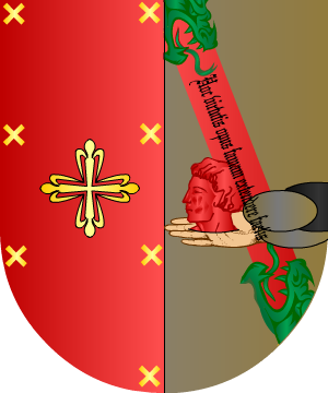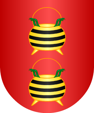 de tres piezas y en cada asa dos sierpes de sinople, gritadas de oro. 2.- Los radicados en Oviedo (Asturias), según Vicente de Cadenas, usan: En campo de oro, una torre de gules, almenada y mazonada de azur. 3.- Los radicados en Granada, según Vicente de Cadenas, usan: En campo de sinople, seis piezas de artillería, de oro, puestas en dos palos de a tres cada uno de ellos. 4.- Los radicados en Requena (Valencia), pasados a Venezuela y Estados Unidos, según Vicente de Cadenas, traen: En campo de oro, cuatro bandas, de gules. 5.- Los radicados en Quintanar del Rey (Cuenca), según Vicente de Cadenas, usan: En campo de sinople, un palo, de gules, perfilado de oro y acompañado de dos sierpes, de oro. 6.- Otros: En campo de azur, dos fajas, de oro. 7.- Francisco Lozano dice que algunos Collado de Laredo usaron también éstas: En campo de oro, dos collados, sumado cada uno de una torre almenada. 8.- En el barrio de Collado, de Limpias, constan las siguientes armas para los Gómez del Collado: Escudo cuartelado: 1º, un león rampante; 2º y 4º, una caldera con sierpes a las asas (armas de Collado), y 3º, tres espadas con las puntas hacia arriba. 9.- Los del Concejo de Ribadesella y El Pedregal (Asturias) traen: En campo de gules, dos calderas de sable, puestas en faja, gringoladas de cuatro cabezas de serpiente, de sinople, y cargada cada una de tres fajas de oro. 10.- Ciriaco Miguel Vigil describe las anteriores armas en la siguiente forma: En campo de gules, dos calderas de sable, perfiladas de oro, con tres fajas de este metal cada una. Y las asas, formadas de serpientes de sinople. 11.- En la casa de los Collado, en Ribadesella, así como en las de los Fernández Collado, en El Pedregal y en la de Argüelles en Mieres de Limanes, del Concejo de Siero (Asturias), traen: En campo de gules, dos calderas de sable, puestas en palo, gringoladas de cuatro cabezas de serpiente, de sinople, y cargada cada una de tres fajas de oro. 12.- Los Collado, de Espinosa de los Monteros y otros en Castilla ostentan: Escudo cuartelado: 1° y 4°, de azur, con una cruz floreteada de oro, y 2° y 3°, de plata, con un castillo de piedra. 13.- Otros, según José Pellicer y Tobar, traen: En campo de gules, dos calderas de oro, puestas en palo, cada una con tres fajas de sable y en cada caldera cuatro cabezas de sierpes de sinople, de dos en dos, cada dos al extremo de cada asa. 14.- En el expediente del citado Caballero de la Orden de Calatrava Diego Antonio Arévalo y Collado, natural de Llerena, año 1702, constan: En la capilla de ese nombre fundada por Juan Collado, Embajador en Roma, Comendador de Ocaña y Caballero de Santiago, en Corral de Almaguer: Se compone de una cruz de Calatrava dorada, cosida con listas negras sobre campo rojo y orlada de siete aspas, y a la izquierda una mano que sale de nubes negras y pardas con una cabeza desollada y una banda roja entre dos bocas de dragantes, todo en campo pardo y con un rótulo que dice: "Hoc virtutis opus famam extendere factis". 15.- Los de Castilla, según Vicente de Cadenas, traen: En campo de gules, una montaña, de oro, sumada de una torre, de plata. Información de estos linajes complementada por cortesía de blasonari.net |