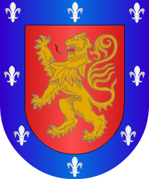 de oro, coronado de lo mismo, y bordura de oro, con ocho flores de lis de azur. 4.- Otros ostentaron: En campo de gules, un león rampante de oro, coronado de gules, y bordura de oro, con ocho flores de lis de azur. 5.- Frías de Albornoz dice que las primitivas armas fueron: En campo de azur, tres flores de lis de plata, y que después acrecentaron este escudo con el león que figura en las anteriores armas. 6.- Los de Galicia y Castilla usan: En campo de gules, un león de su color. Bordura de azur con ocho flores de lis de plata. 7.- Otros de Galicia traen: Escudo cuartelado: 1º y 4º, en campo de azur, cinco flores de lis de gules, puestas en aspa, y 2º y 3º, en campo de gules, una banda de oro. 8.- Otros de Galicia usan: De azur, sembrado de flores de lis de plata. 9.- Después usaron: En campo de plata, un león rampante de oro con barras de gules. Bordura de azur con ocho flores de lis de plata. 10.- Otros de Galicia: Escudo cuartelado: 1º y 4º, en campo de azur, cinco flores de lis de oro, puestas en aspa, y 2º y 3º, en campo de oro, una bandera, de gules. 11.- Otros de Galicia: En campo de gules, un león de oro, rampante y coronado, con heridas sangrientas por el cuerpo. Bordura de oro con ocho flores de lis de azur. 12.- Los de Extremadura, según Vicente de Cadenas, traen: Escudo partido: 1º, en campo de azur, cinco flores de lis, de oro, y 2º, en campo de oro, una bandera de gules. Bordura general de azur con cuatro flores de lis de plata. 13.- Otros: En campo de gules, un león de oro con unas barras de sable y gules. Bordura de azur con cuatro flores de lis de plata. 14.- Otros: En campo de gules, un león de oro barrado de plata y gules. Bordura de azur con ocho flores de lis de plata. 15.- Otros, según García Alonso de Torres, traen: En plata, un león rampante de gules. 16.- Otros: En campo de plata, una caldera de gules, entre dos fajas de oro. Bordura de gules anglesada. Complemento de información de estos linajes por cortesía de blasonari.net |