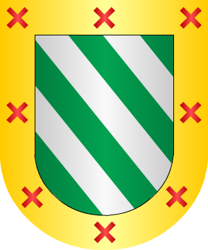 rampante de su color, con una caldera de sable en la mano izquierda. 15.- Juan de Esteve y de Pera usaba: En campo de oro, un grifo rampante de gules. 16.- Los Esteve, de Castellón, usan: En campo de azur, un pico de hierro, de oro, puesto en palo. 17.- Los Esteve, de València, traen: Escudo cortado por una faja de sable y en su parte superior de plata, un pájaro al natural iniciando el vuelo para volar y abajo en azur dos picos de hierro de oro, puestos en faja, uno sobre otro. 18.- Los Esteve, radicados en Ciudad Real, según Vicente de Cadenas, usan: En campo de plata, dos bastones, de gules. 19.- Los Estévez, de León, según Vicente de Cadenas, usan: En campo de plata, una barra, de gules, acompañada en lo alto de una caldera, de sable, y en punta de una estrella, de azur. 20.- Los Estévez, de Castilla, según Vicente de Cadenas, traen: En campo de oro, un jabalí, de sable atacado por tres lebreles, de su color que lo muerden. 21.- Algunos Estévez: En campo de gules, un águila de plata, armada de sable. 22.- Otros: Una flor de lis y ambos lados sumados de dos pájaros, afrontados y con las cabezas contornadas. Complemento de información de estos linajes por cortesía de blasonari.net |