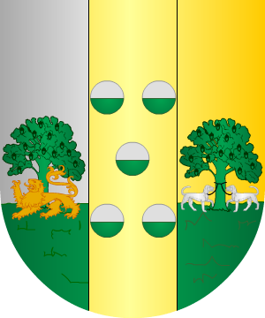 Procede del linaje de Apodaca (Alava). En plata, una torre de piedra, y, saliendo de su homenaje, un brazo armado, de sable, con una espada desnuda, del mismo color. (Ref.: QUEREJETA) |