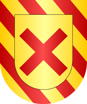 En oro, un león, de sable, rampante y con una rosa en su mano diestra. (Ref.: CADENAS) |