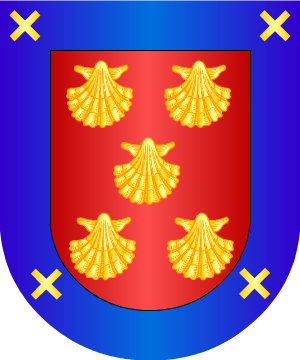 Armas En gules, una banda jaquelada, en dos órdenes, de oro y sable, y acompañada de dos estrellas de oro. (Ref.: CADENAS). |