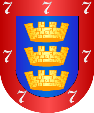 Cubano, enlazado con los Marqueses de Esteva de las Delicias, Grandes de España. Armas En campo de azur, tres coronas murales de oro, puestas en palo, bordura de gules con siete sietes de plata. (Ref.: GARCIA CARRAFA), (ref.: ATIENZA), (ref.: GONZALEZ-DORIA), (ref.: CADENAS). |