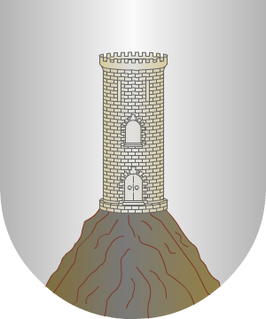 de plata, un monte moviente de la punta y sumado de una torre, todo al natural. Complemento de información de estos linajes por cortesía de blasonari.net |