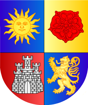 Asturiano, del concejo de Carreño. Armas 1.- De plata, un águila imperial exployada de sable. Bordura de sinople con ocho aspas de oro. 2.- El emperador Carlos I concedió a D. Francisco Muñiz, conquistador de Indias, por privilegio otorgado el 8 de Diciembre de 1.535 las siguientes armas: Cortado, 1º de azur, una estrella de oro; medio partido de lo mismo, otra estrella de oro; y 2º de sinople, una torre de plata. Bordura de gules con ocho flores de lis de oro. |