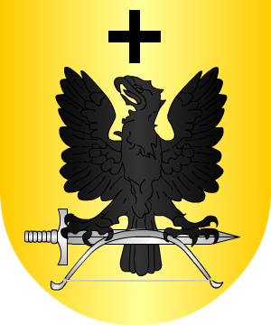 Asturiano, del concejo de Carreño. Armas 1.- De plata, un águila imperial exployada de sable. Bordura de sinople con ocho aspas de oro. 2.- El emperador Carlos I concedió a D. Francisco Muñiz, conquistador de Indias, por privilegio otorgado el 8 de Diciembre de 1.535 las siguientes armas: Cortado, 1º de azur, una estrella de oro; medio partido de lo mismo, otra estrella de oro; y 2º de sinople, una torre de plata. Bordura de gules con ocho flores de lis de oro. |