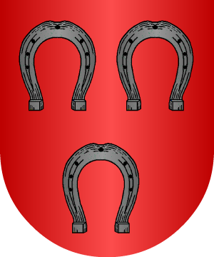 10.- Otros: en campo de gules, tres hierros, de caballo, puestos dos y uno.